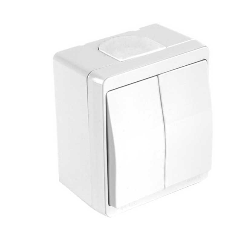 Διακόπτης στεγανός Διπλός Αλλέ-Ρετούρ IP44 Λευκός με Στυπιοθλήπτες Μεμβράνης