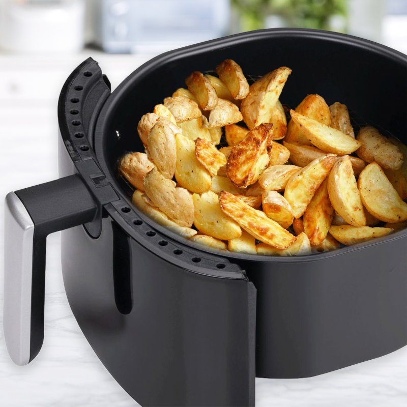 Φριτέζα αέρος που μαγειρεύει χωρίς λάδι, για πιο υγιεινά αλλά και νόστιμα φαγητά. Ο αποσπώμενος κάδος έχει χωρητικότητα 3,2 λίτρα και μαγειρεύει γρήγορα με ελάχιστο ή και καθόλου λάδι φαγητά που θα κάνατε στο τηγάνι, όπως τηγανητές πατάτες ή ακόμα και ένα ολόκληρο κοτόπουλο. Απολαύστε τη όλη γεύση χωρίς τα λιπαρά. Ζεσταίνει γρήγορα τον αέρα στη θερμοκρασία που εσείς επιλέγετε και ρυθμίζοντας τον χρονοδιακόπτη, μπορείτε να ασχολείστε με άλλα πράγματα χωρίς να φοβάστε ότι θα καεί το φαγητό σας. Η κουζίνα σας μένει πάντα καθαρή, χωρίς μυρωδιές!