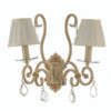 Πρόκειται για ένα μπεζ μεταλλικό επιτοίχιο φωτιστικό με δύο λαμπτήρες και διακριτική ύπαρξη κρυστάλλων. Τα μπεζ υφασμάτινα καπέλα που καλύπτουν τους λαμπτήρες δίνουν έναν απαλό φωτισμό στον χώρο.