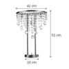 Πρόκειται για ένα χρώμιο μεταλλικό επιτραπέζιο φωτιστικό. Οι τρεις λαμπτήρες καλύπτονται από διάφανα στρογγυλά κρύσταλλα, στο τελείωμα κάποιων υπάρχουν διάφανες μπάλες. Όταν είναι αναμμένο το αποτέλεσμα είναι εντυπωσιακό!