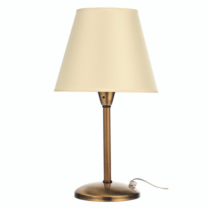 Πρόκειται για ένα μεταλλικό επιτραπέζιο φωτιστικό σε οξυντέ απόχρωση. Το υφασμάτινο καπέλο το συνοδεύει συμπληρώνοντας τη μίνιμαλ σχεδίασή του.