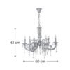 Πρόκειται για ένα μεταλλικό κρεμαστό φωτιστικό σε απόχρωση μπεζ πατίνας με έξι λαμπτήρες. Τα κρύσταλλα δίνουν μια επιπλέον λάμψη, αλλά μπορούν και να αφαιρεθούν. Η μεταλλική ανάρτηση είναι ρυθμιζόμενη για να προσαρμοστεί στον κάθε χώρο. Διατίθεται και λευκό υφασμάτινο καπέλα για πιο απαλό φωτισμό το οποίο θα πρέπει να ζητηθεί επιπλέον.