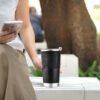 Θερμαινόμενη κούπα ταξιδίου με χωρητικότητα 380 ml. Με το θερμοστάτη μπορείτε να ζεστάνετε τον καφέ ή το ρόφημά σας ακριβώς στη θερμοκρασία που θέλετε, ανάμεσα σε 40-90°C, και να το πάρετε μαζί σας. Είναι σχεδιασμένο ώστε να χωράει στις ποτηροθήκες των αυτοκινήτων και το καπάκι του δεν επιτρέπει το περιεχόμενο να χυθεί. Διαθέτει θερμόμετρο για να ξέρετε ακριβώς πόσο ζεστό είναι το περιεχόμενο. Είναι κατασκευασμένο από ανοξείδωτο ατσάλι με διπλό τοίχωμα και εξωτερικό περίβλημα από σιλικόνη για ασφαλές κράτημα.
