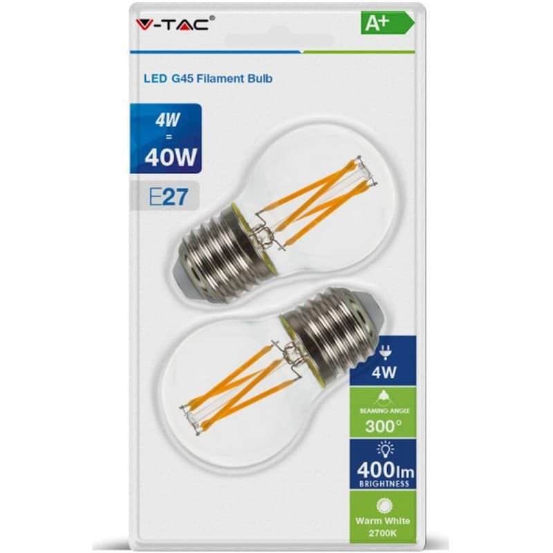 Λάμπα LED P45 Cross Filament 4W E27 2700K Θερμό Λευκό 2 τεμάχια Blister V-TAC 7367