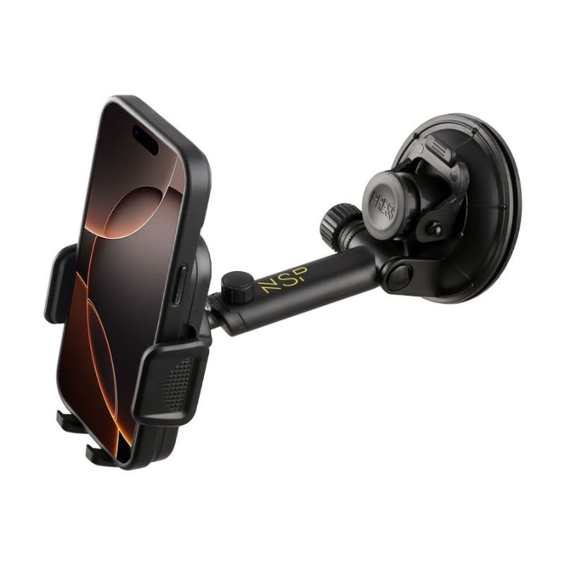 Η NSP N25 είναι η τέλεια βάση στήριξης αυτοκινήτου για όσους θέλουν σταθερότητα, ευελιξία και στιλ! Πρόκειται για μία συσκευή που σώζει το κινητό σας από κάθε επικίνδυνη πτώση! Εξοπλισμένη με μεγάλη βεντούζα (90mm) που “κολλάει σαν μαγνήτης” σε κάθε λεία και τραχιά επιφάνεια, παρμπρίζ ή ταμπλό, αυτή η βάση στήριξης υπόσχεται σταθερότητα ακόμα και στις πιο απότομες στροφές. Είναι συμβατή με κινητά από 4.7″ έως 7.9″ και χάρη στην 360° περιστροφή, μπορείτε να τοποθετήσετε το κινητό σας ακριβώς όπως θέλετε. Οριζόντια για βίντεο και GPS και κάθετα για κλήσεις και μηνύματα! Πατώντας το κουμπί στο επάνω πίσω μέρος της βάσης, μπορείτε να ρυθμίσετε το άνοιγμα των βραχιόνων, οι οποίοι είναι και αδιάβροχοι και να τους προσαρμόσετε στο επιθυμητό μέγεθος (ρυθμιζόμενο άνοιγμα έως 98mm). Ο βραχίονας της βάσης (20cm σε πλήρη έκταση) προσφέρει σταθερότητα, αλλά ταυτόχρονα δίνει τη δυνατότητα προσαρμογής σε πολλές διαφορετικές γωνίες και ύψη, επιτρέποντας την ιδανική ρύθμιση για κάθε οδηγό και όχημα.
