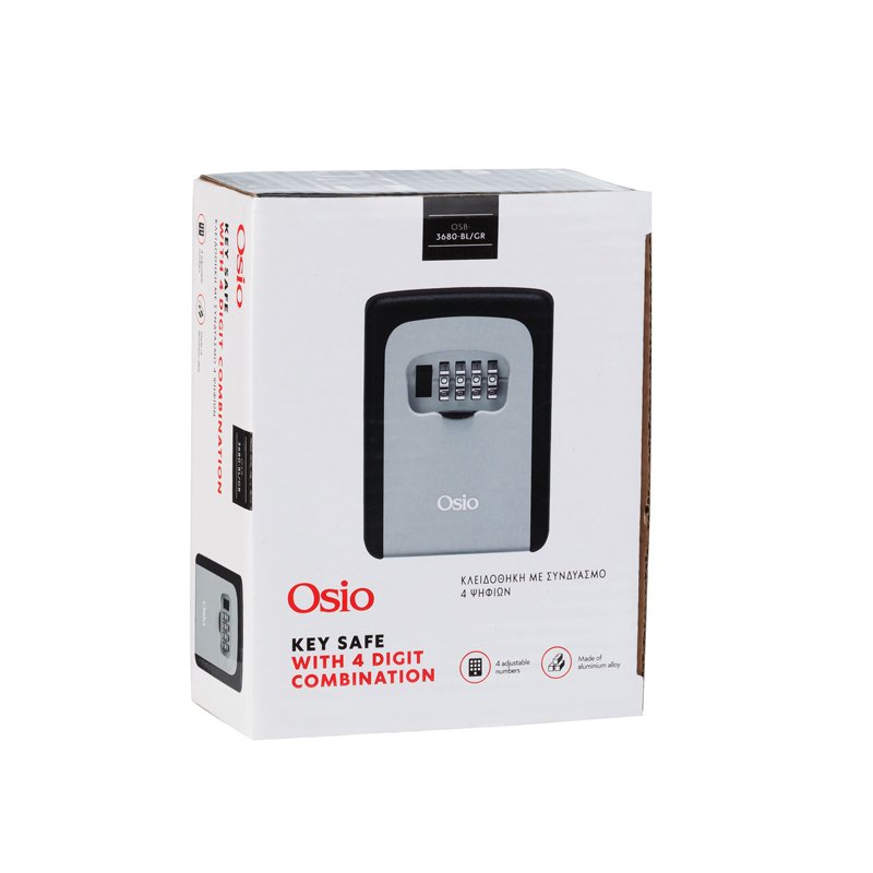 Οsio OSB-3680-BL/GR Μαύρη/Γκρι κλειδοθήκη από αλουμίνιο με συνδυασμό 4 ψηφίων – 9 x 4 x 12cm