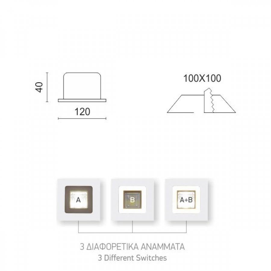 Spotlight 5256 Τετράγωνο Μεταλλικό Χωνευτό Σποτ με Ενσωματωμένο LED και Θερμό Λευκό Φως 12W 4000K/3000Κ 1090lm σε Λευκό χρώμα