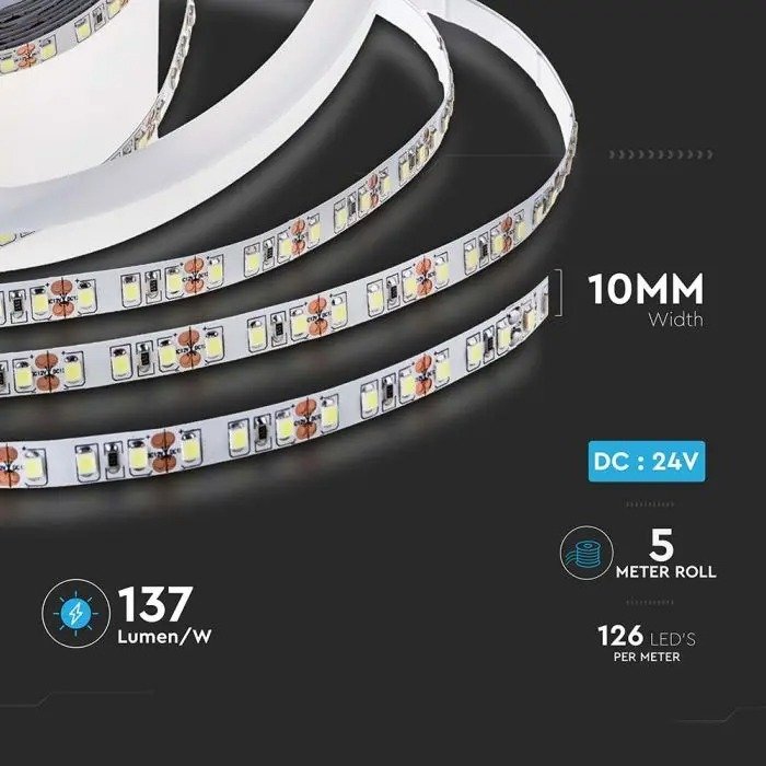 V-TAC 212594 Ταινία LED SMD 24V 8W 1100lm/m 126LEDs/m 120° IP20 Φυσικό Λευκό Φως Μήκους 5m