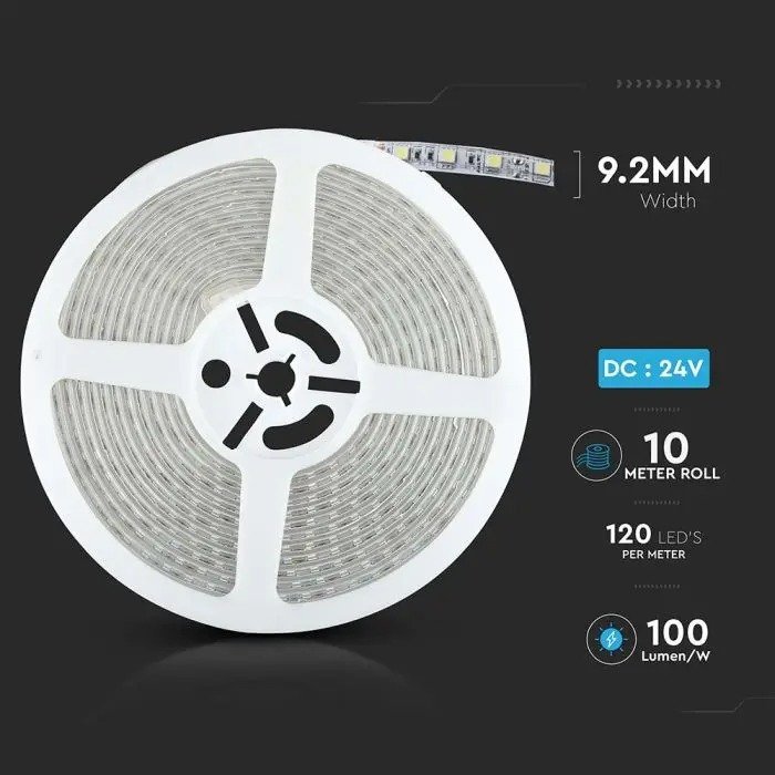 V-TAC 212625 Ταινία LED SMD 24V 8W 750lm/m 120LEDs/m 120° IP65 3000Κ Ζεστό Λευκό (10 μέτρα)