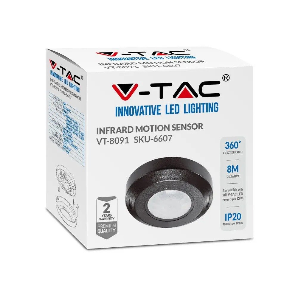V-TAC 6607 Ανιχνευτής Κίνησης Υπερύθρων Οροφής 360° Μαύρο
