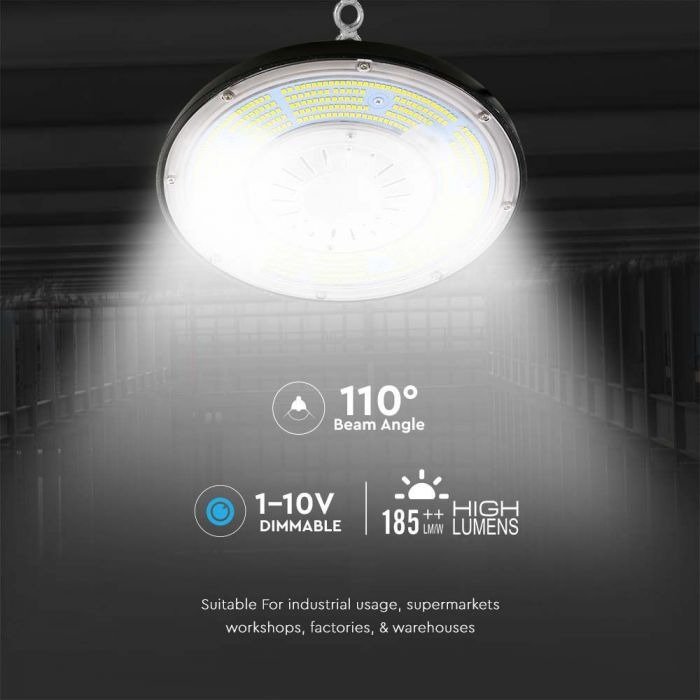 V-TAC 7655 Φωτιστικό Καμπάνα LED SMD 100W 4000K σε Μαύρο Χρώμα με Τροφοδοτικό Meanwell 185lm/W