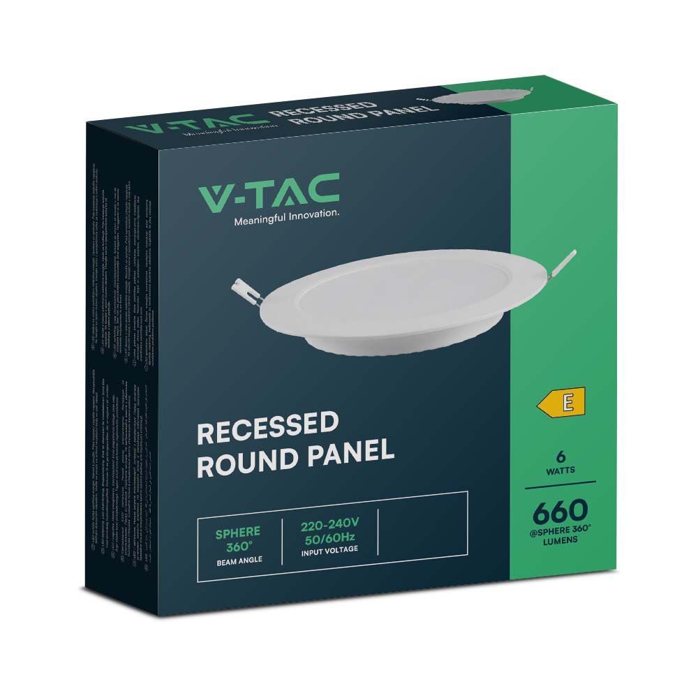 V-TAC 7860 LED mini panel χωνευτό backlit 6W 6500K ψυχρό λευκό στρογγυλό