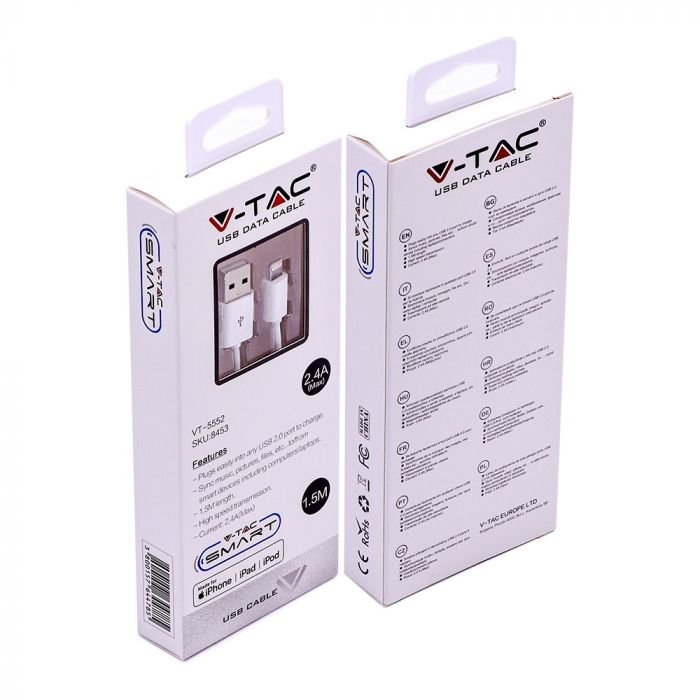 V-TAC 8453 Καλώδιο USB iPhone MFI 1,5 μέτρο Λευκό